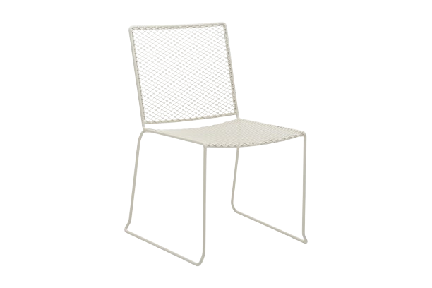 En stol at blive nostalgisk i. Stolen med 56 stel giver et lille svaj på et stel af varmgalvaniseret stål og giver en klassisk funkish følelse med teak lameller.
