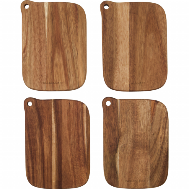 Disse smukke skærebrætter i akacietræ er perfekte til lette serveringer eller hurtige måltider. Hvert bræt har unikke farvevariationer, som giver et dekorativt og funktionelt element til dit køkken.