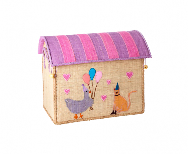 Lille opbevaringskurv i naturlig raffia med det sødeste festlige dyreprint og lyserøde detaljer. Denne kurv har en høne med balloner og en sød kat med festhat ... klar til at fejre! Lavet i et naturligt og bæredygtigt materiale og perfekt til opbevaring på børneværelset, til sko i gangen eller i stuen, hvor du ikke vil have for meget frem. Varenr: BSHOU-SPAIEAN kode for produktet: - Kontakt os